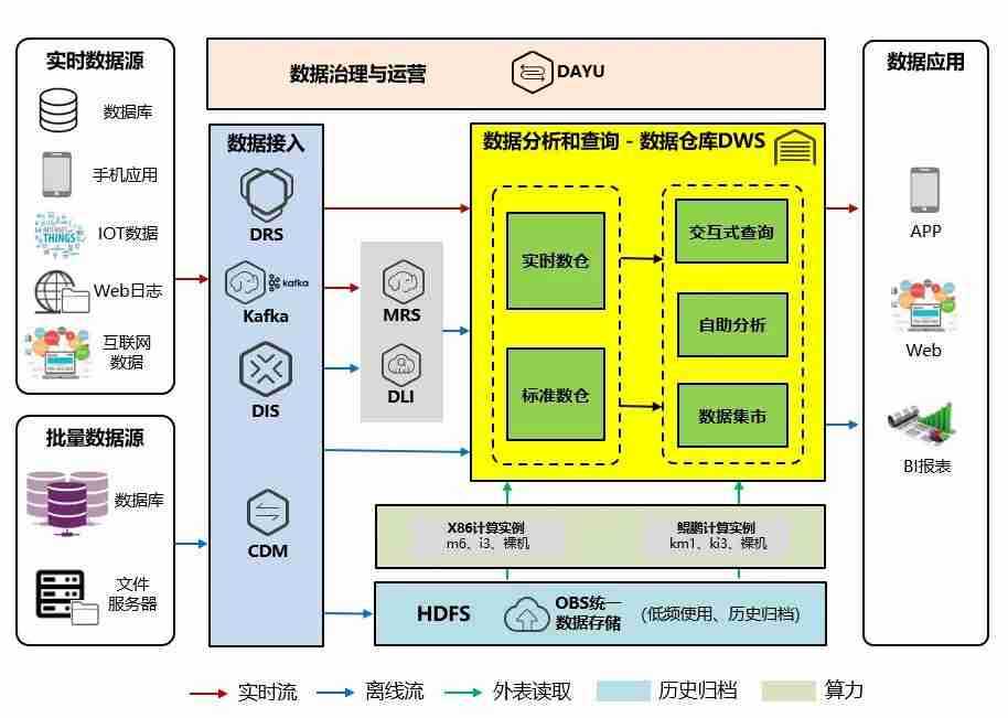 交通银行数据仓库(DWS)采用旺财28鲲泰R722服务器作为数据底座,,,采用MPP(Massive Parallel Processing)架构,,,支持行存储与列存储,,提供PB(Petabyte,,,2的50次方字节)级别数据量的处理能力。。